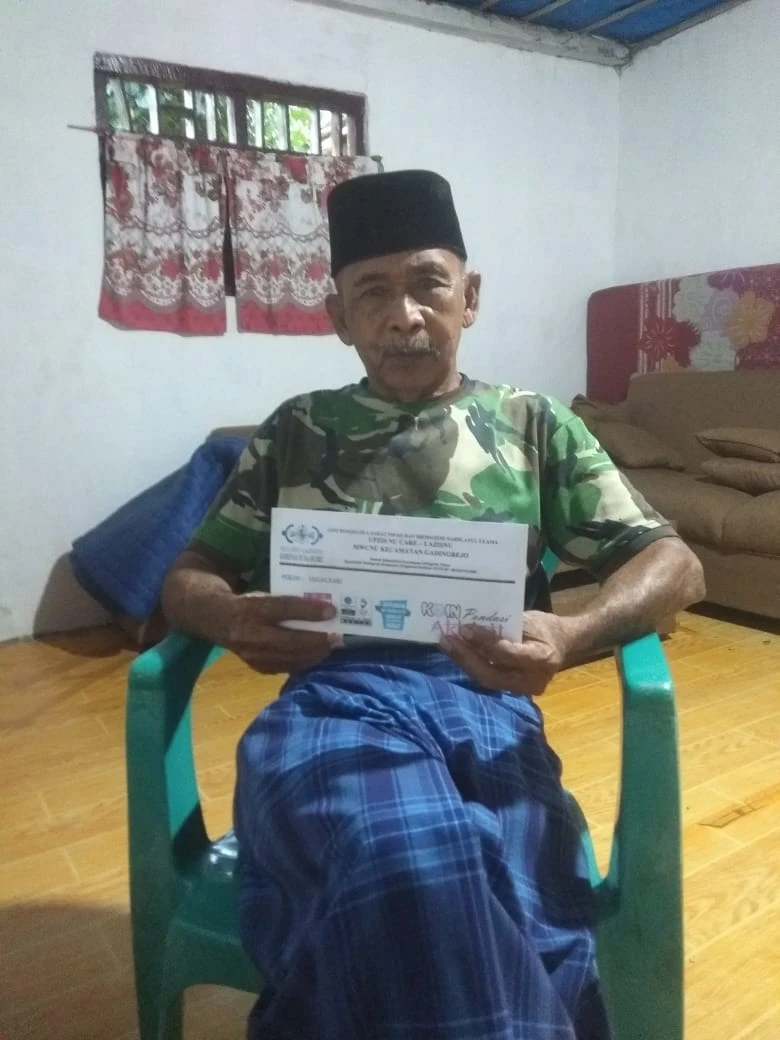 Bantuan diserahkan langsung oleh Staf Sub Area UPZISNU Tegalsari, Ibu Nur Umi Laila, dan diterima oleh Bapak Pujiharto, suami dari Ibu Nasiyem. Pasalnya, Ibu Nasiyem saat ini masih menjalani perawatan di rumah sakit.